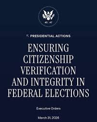 Presidential Executive Order, March 31, 2026: https://www.whitehouse.gov/presidential-actions/2026/03/ensuring-citizenship-verification-and-integrity-in-federal-elections/